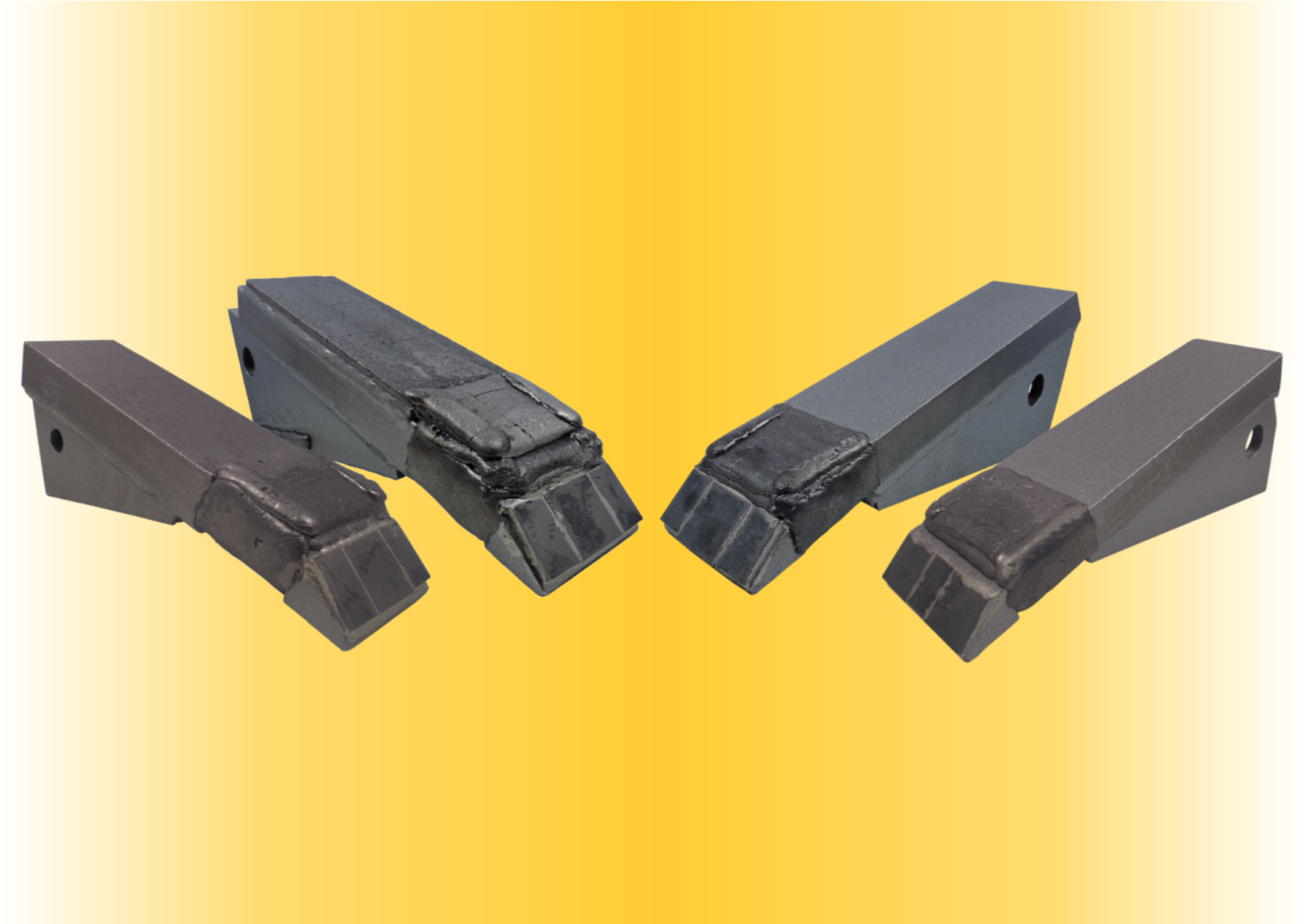 Nous savons que la résistance et la longévité d’une pièce carbure sont dues aux plaquettes carbures, mais elles sont également renforcées et complétées par le rechargement et la massivité du support. C’est pour cette raison que nous utilisons uniquement des pointes de 30mm d’épaisseur pour maintenir l’équilibre d’usure et une tenue longue durée à nos produits. De plus, nous avons récemment mis au point des mises à souder pour venir compléter et concevoir des sabots à ailes. Avec un angle bien particulier pour ne pas créer trop de tire, ces rallonges permettent de créer une alternative complémentaire au sabot standard.